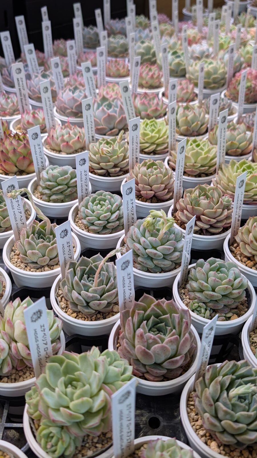 多肉植物専門店リュミエールは東京都で、ずらっとたくさんのエケベリアが並ぶ多肉植物のお店です。